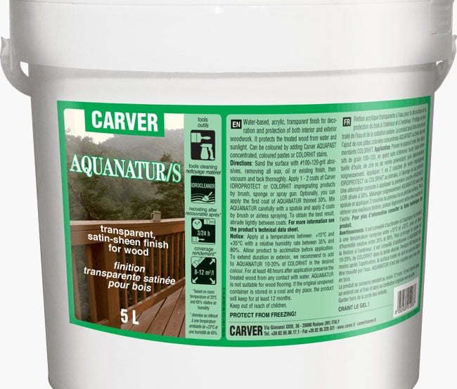 Barniz de acabado acrílico al agua para la decoración y protección de las carpinterias y de la madera al interior y al exterior. Protege la obra tratada del agua y de los rayos del sol. AQUANATUR puede ser coloreado añadiendo nuestras pastas coloreadas concentradas AQUAPAST, o bien nuestros mordientes COLORHIT.